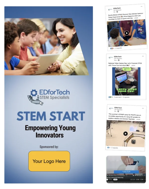 - Recognition in classrooms via banners, classroom materials, and STEM kits.